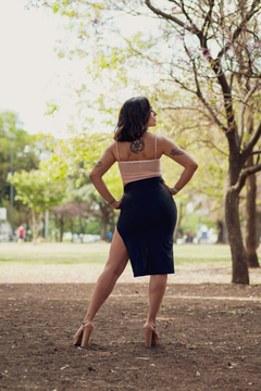 Pollera "Anahera " ( Pollera en Lycra de Mallas bien tiro alto con tajo asimetrico y con largo midi)